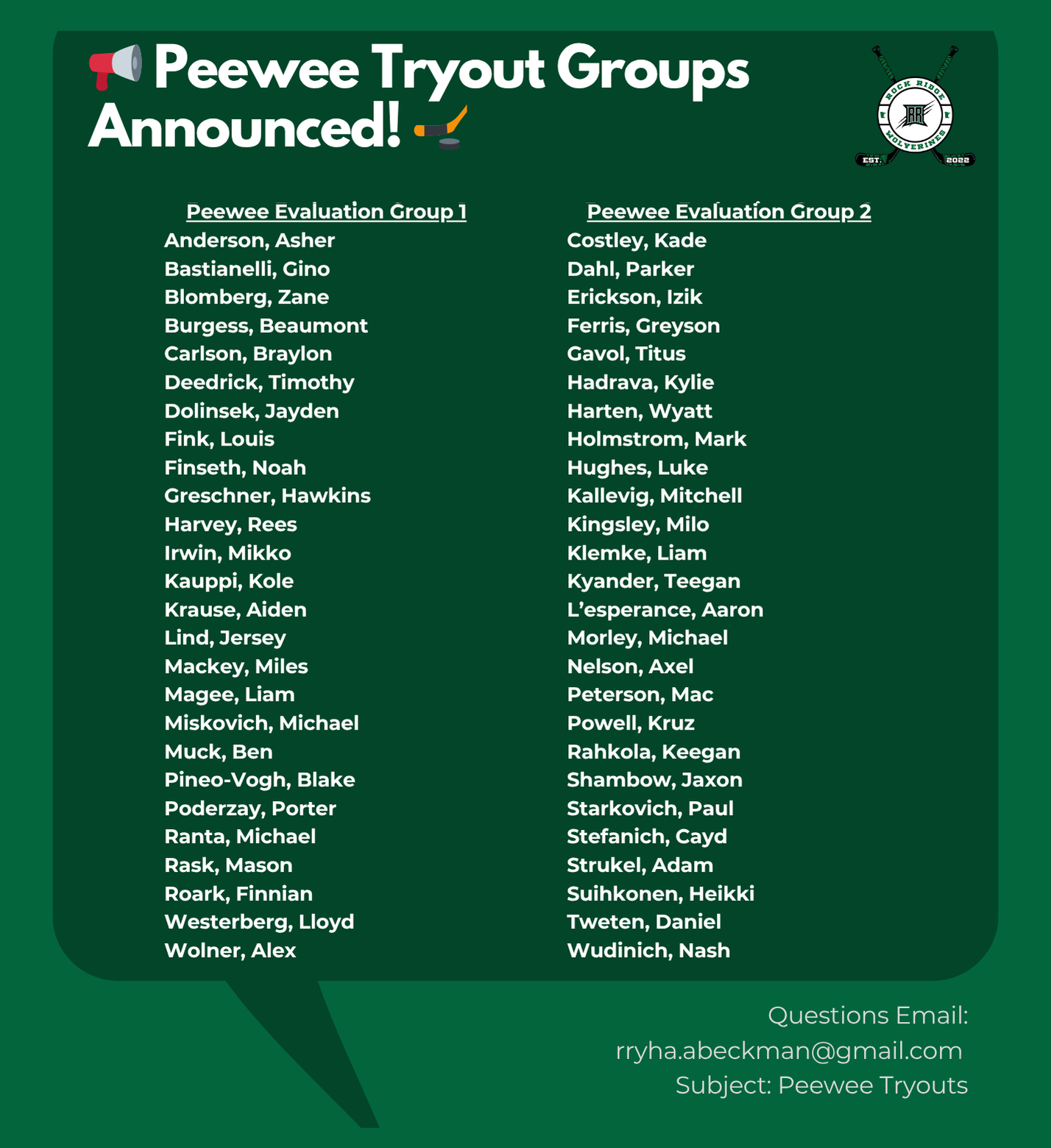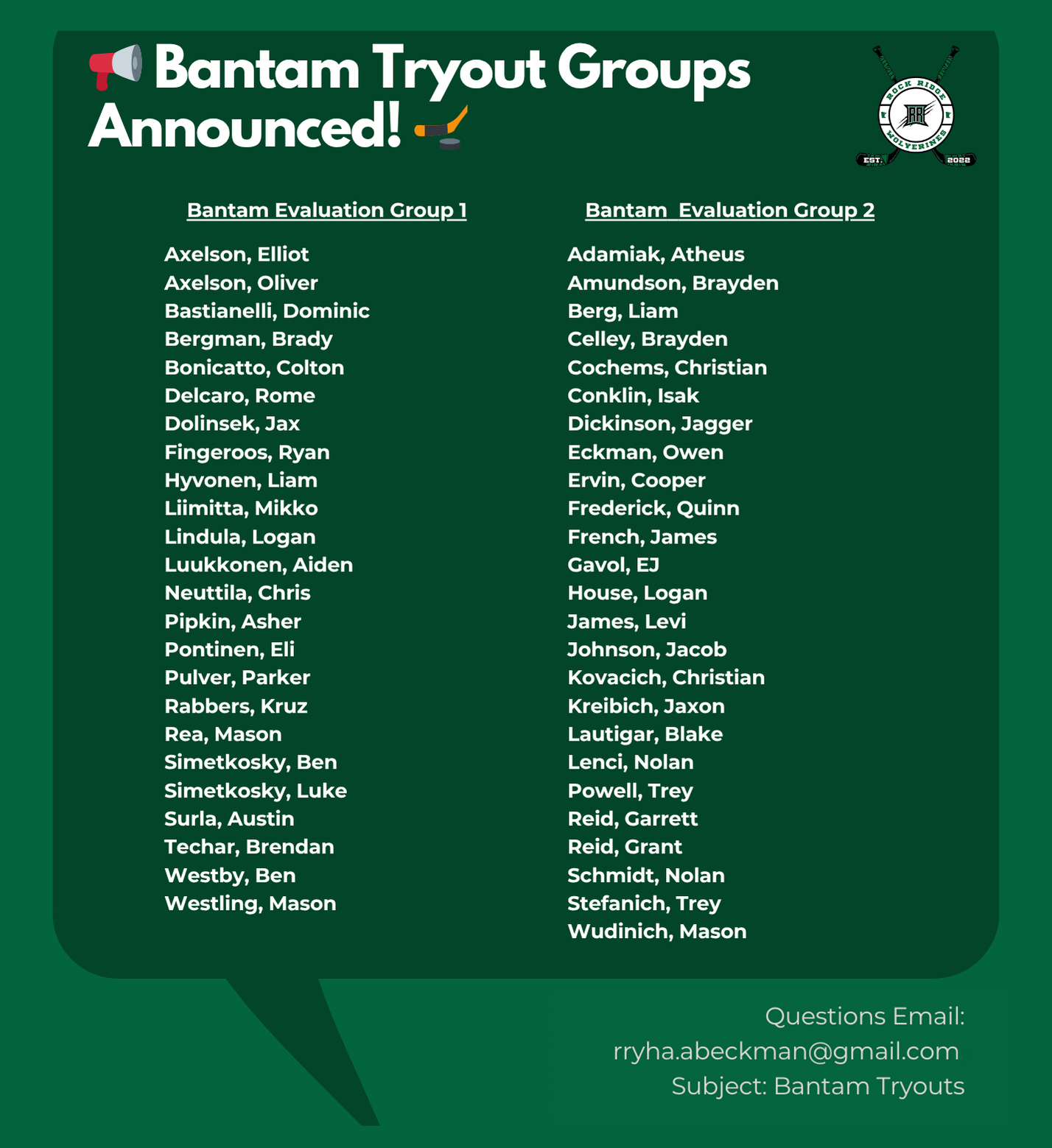 RRYHA Squirt, Peewee, & Bantam Evaluation Process – 2025 Season