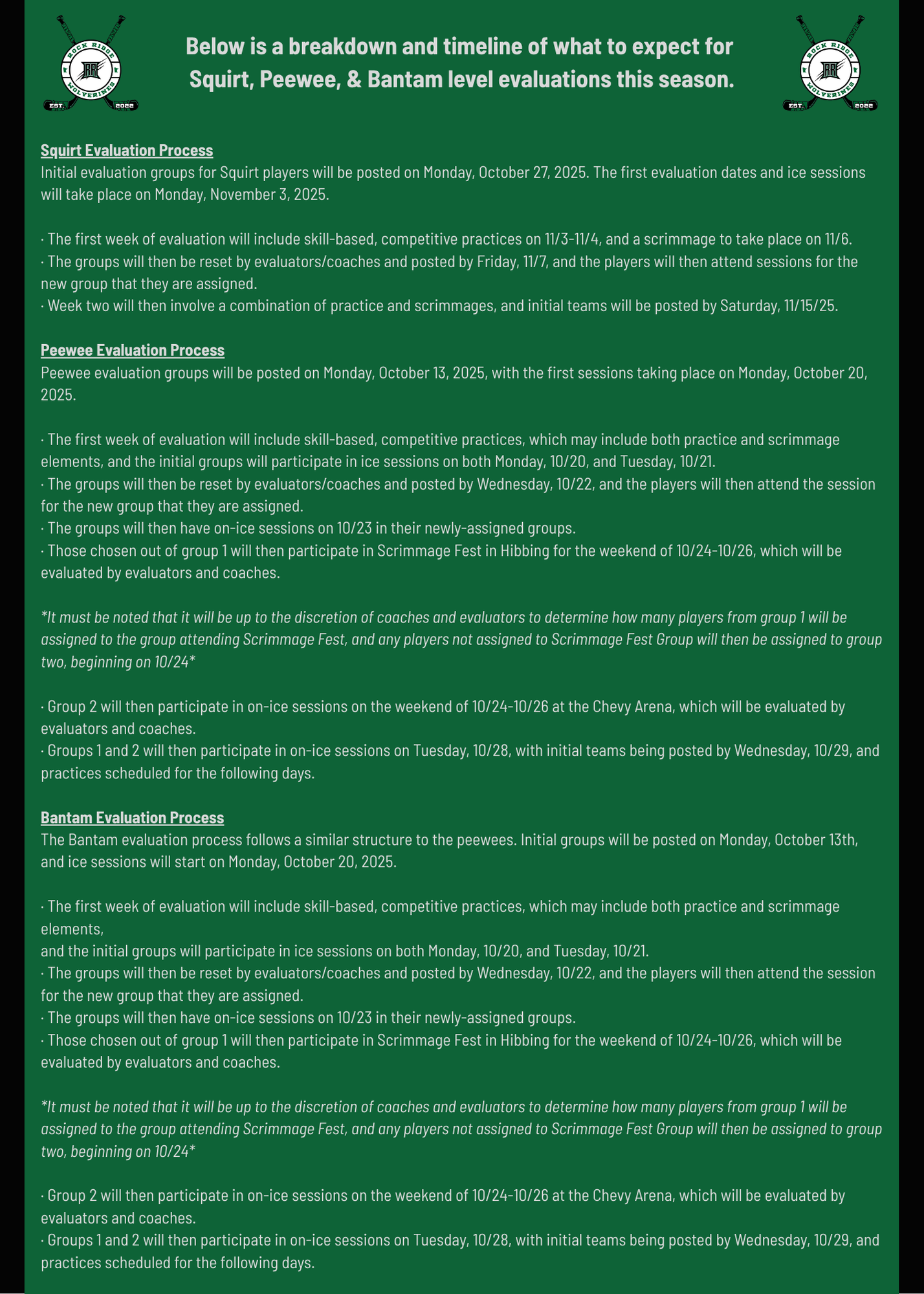 RRYHA Squirt, Peewee, & Bantam Evaluation Process – 2025 Season