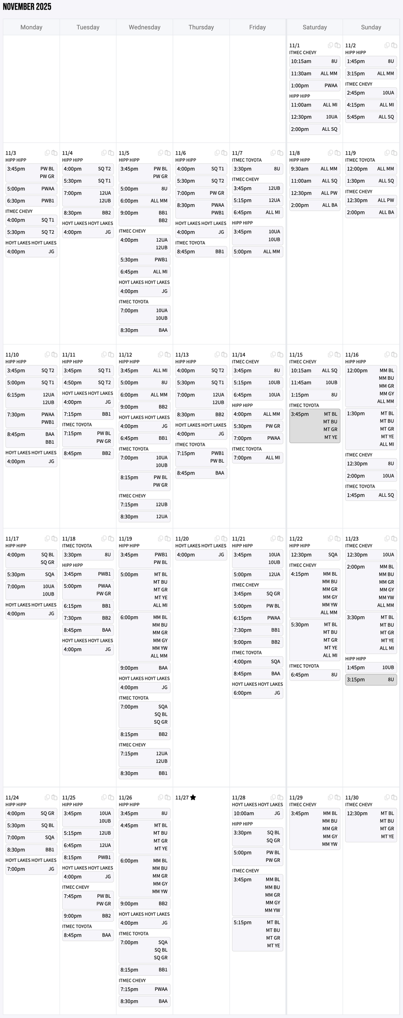 Rink Schedules
