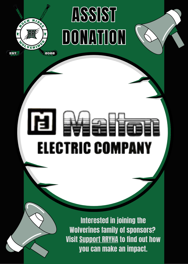 Over the years, Malton has grown into a trusted name in the region, supporting operations with their expertise in motors, generators, control systems, and more—all while maintaining a commitment to quality and community. By stepping up as a sponsor, Malton Electric is helping RRYHA invest in the future of our youth. Their contribution will support players across all levels.